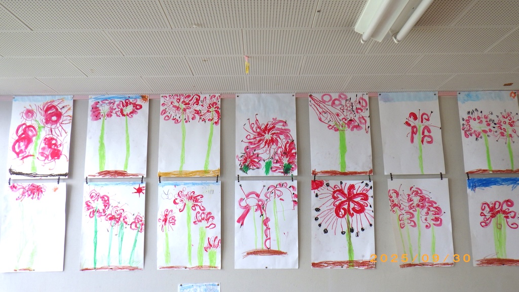 年長さんが彼岸花の絵を描きました。