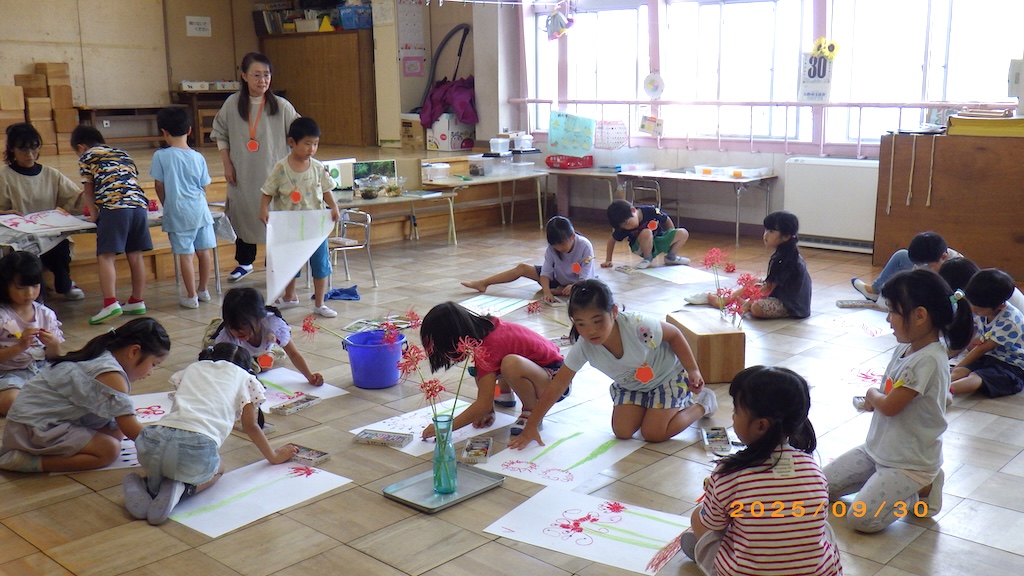 年長 絵画活動「彼岸花」