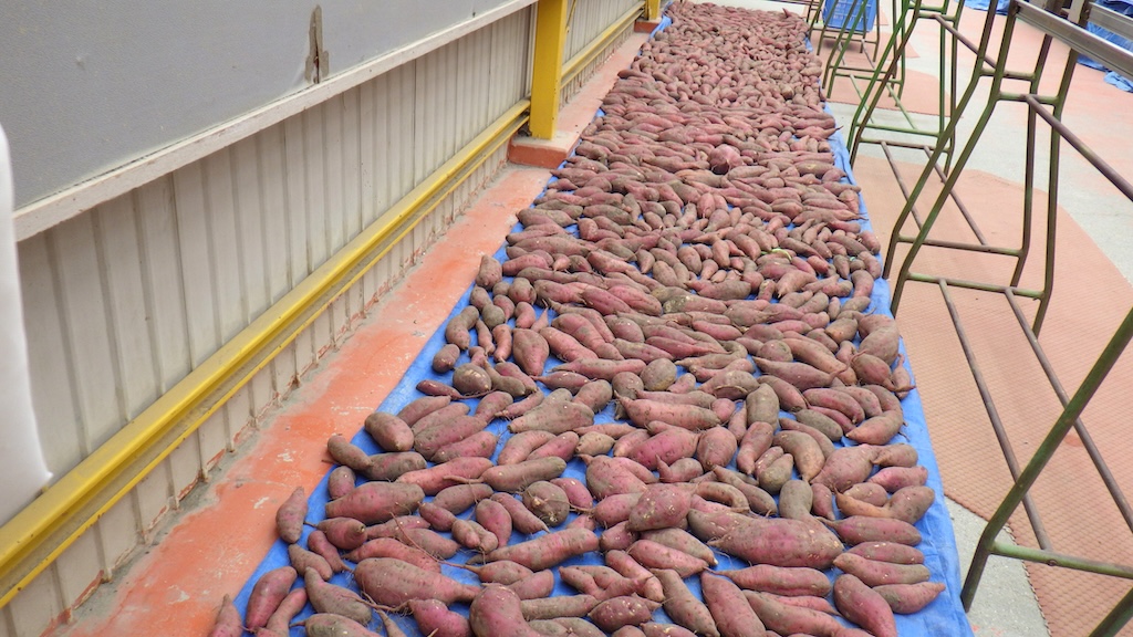 通路に干して追熟させていたさつまいもを、