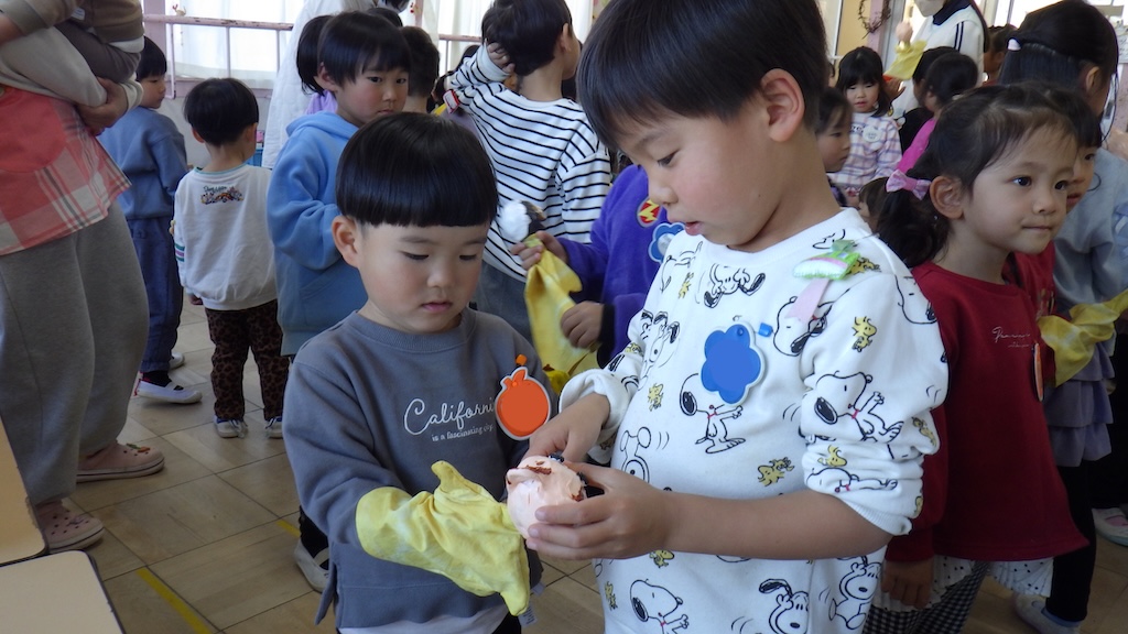 興味津々な年少さんに、