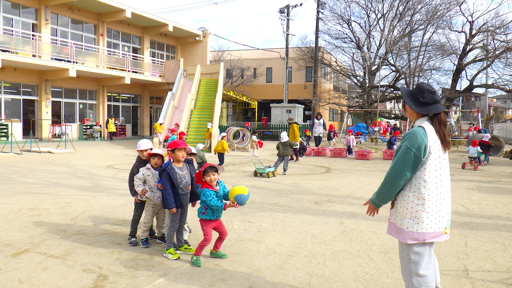 園庭では、