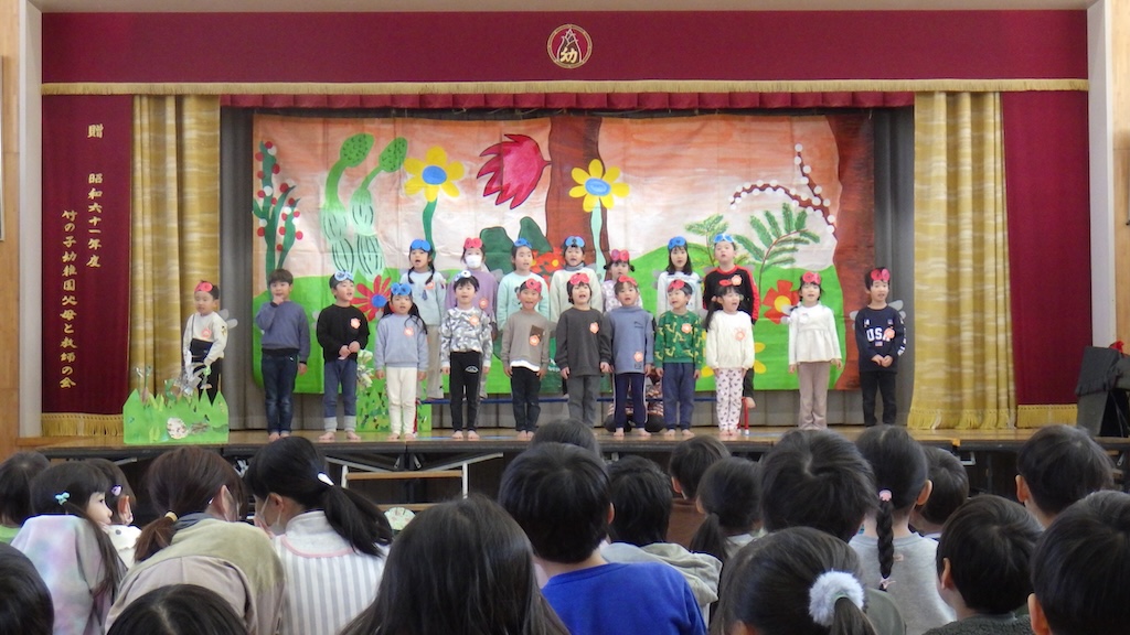 マテバシイとクヌギはどんぐりの実がなります。 (どんな実がなるかは、調べてみてくださいね) 子どもたちを見守ってくれる木になりますように。 いよいよ今週木曜日から“歌と劇遊びの会”がはじまります。 子どもたちがお客さんになって、劇の見あいっこも楽しんでいますよ♪