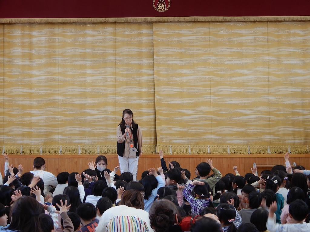 園長先生のお話をしっかり聞いて、