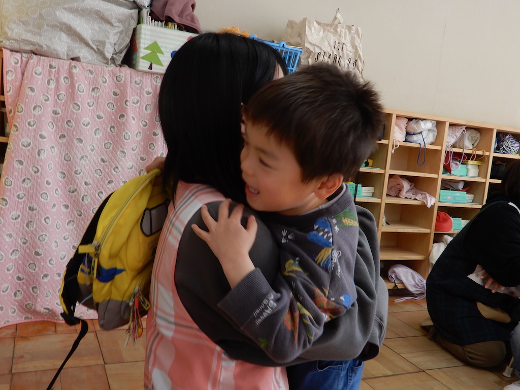先生とハイタッチしたり、ギュッとしたり…