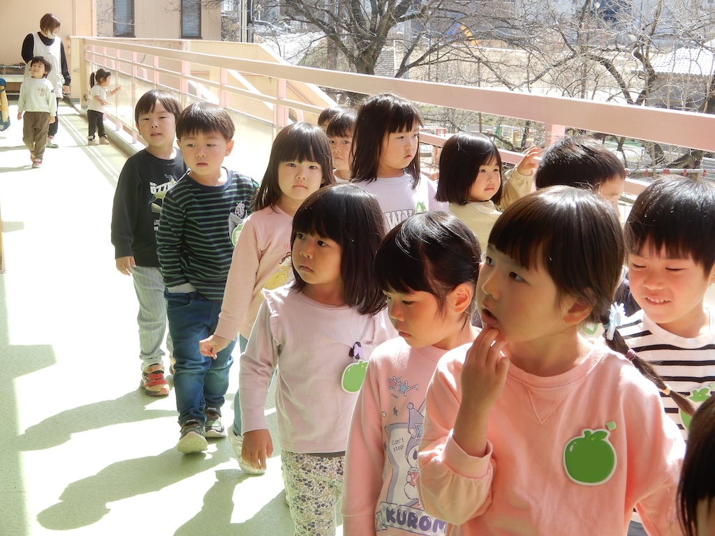 年少さんは、年中さんの保育室や