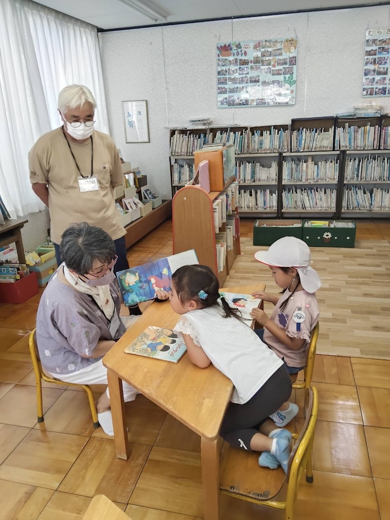 9月9日 10日 11日の祖父母参観日に、図書室開放を行いました。 「図書室はここだよ」と嬉しそうに案内する年長さん。「たくさん絵本があるねぇ」と蔵書の多さに驚かれる祖父母のみなさん。 「よんで よんで!」同じ絵本を一緒に見て、楽しそうにおしゃべりをしている姿に図書室はほんわかした雰囲気につつまれていました。