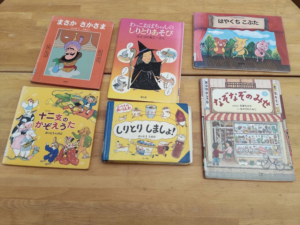 図書室には、言葉遊びの絵本がいろいろ揃っていますよ。
